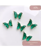 Подвеска Бабочка стекло позолота 14К 15х16 мм изумрудный