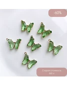Подвеска Бабочка стекло позолота 14К 15х16 мм зеленый