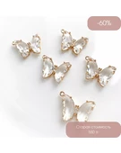 Подвеска Бабочка стекло позолота 14К 15х16 мм прозрачный