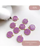 Подвеска Круглая Змея эмаль сиреневый позолота 14К 13х17 мм