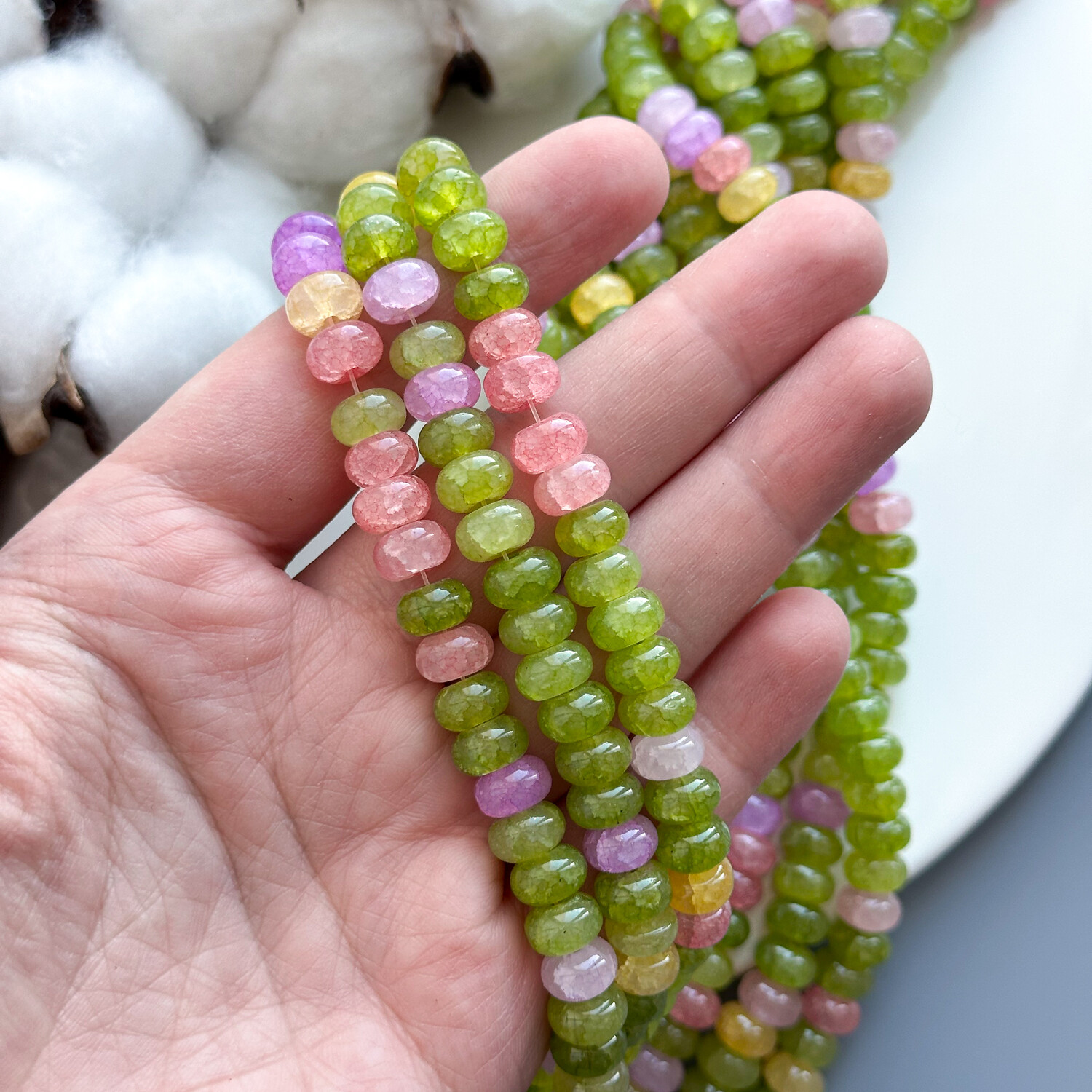 Бусины MIX плоские стекло 5х8 мм зелёно-жёлто-розовый полупрозрачный