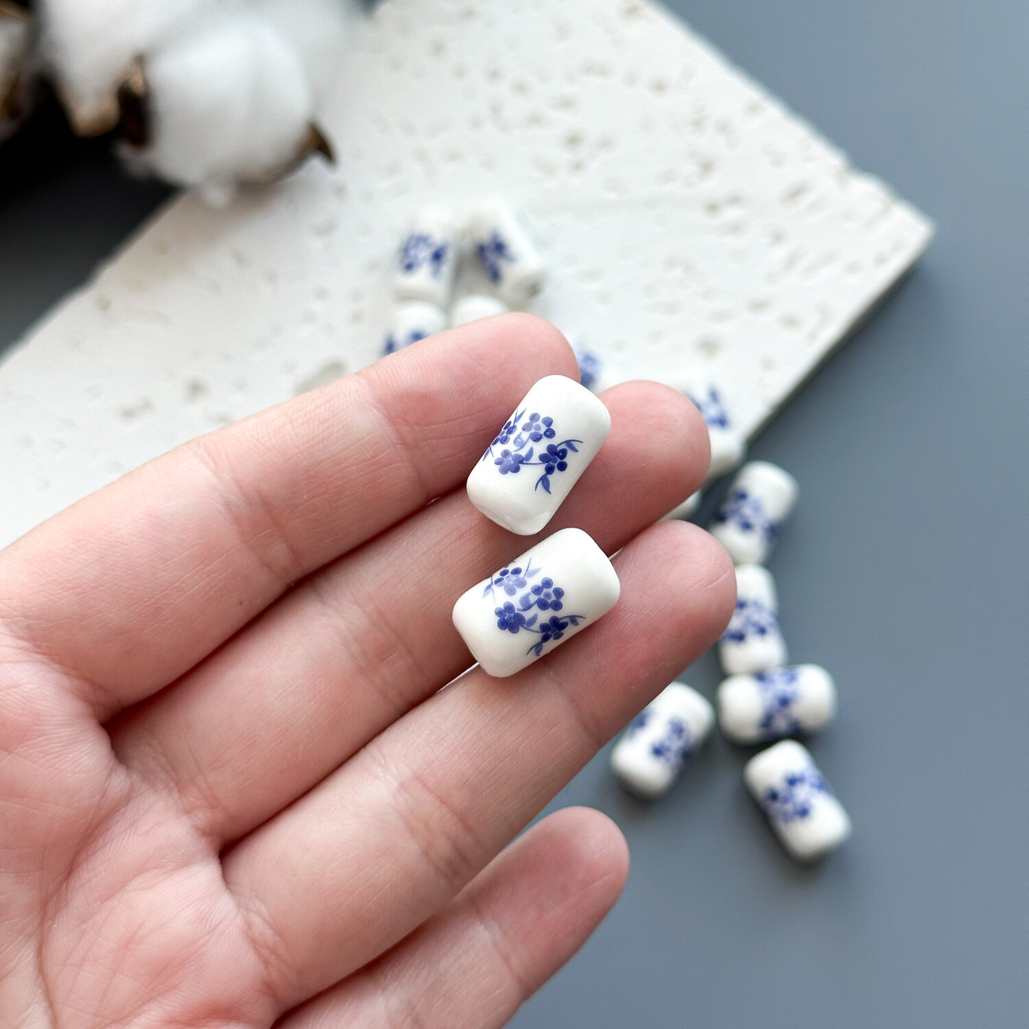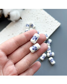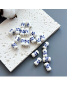 Бусина цилиндрическая с цветком керамика 10х17 мм синий (1 шт.)