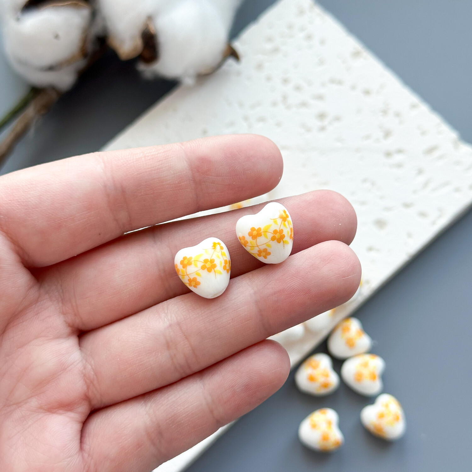 Бусина Сердце с цветком керамика 12 мм жёлтый (1 шт.)