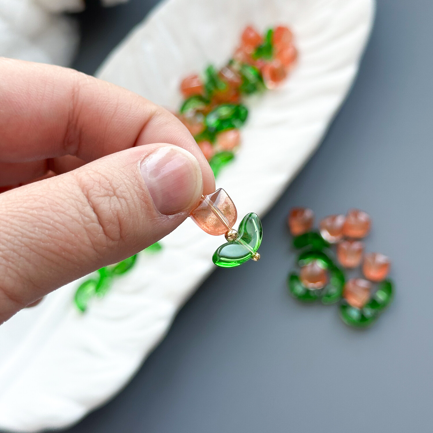 Бусины Тюльпан с листьями 9х9 мм/14х7 мм оранжевый