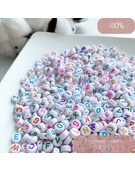 Бусины Буквы белые с цветной надписью 7 мм 50 шт.